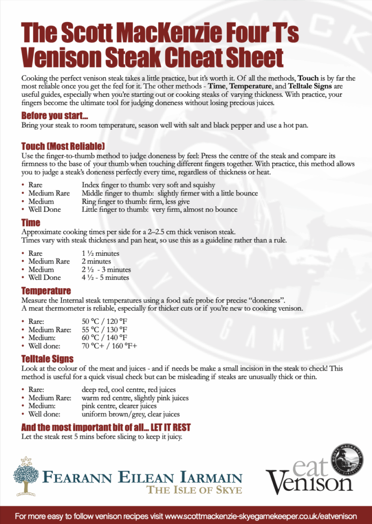 Click here to download Scott’s Four T’s Venison Steak Cheat Sheet